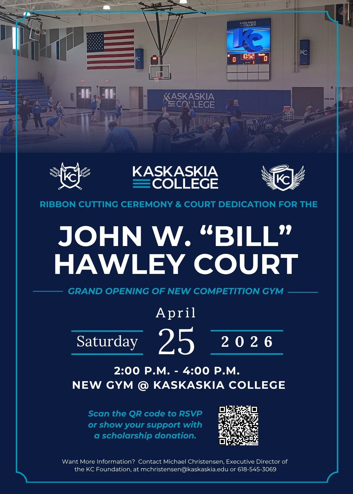 Join us for the Grand Opening of our new Competition Gym and the Court Dedication honoring John W. “Bill” Hawley, whose leadership and dedication have helped shape the College for decades.