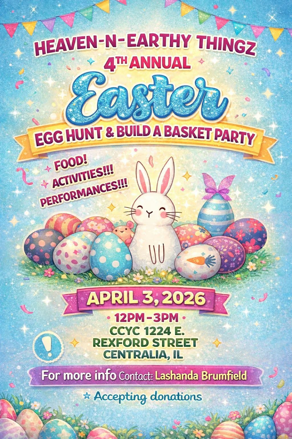 Back to All Events 4th Annual Easter Egg Hunt & Build A Basket Party at CCYC Friday, April 3, 2026 12:00 AM 3:00 PM Centralia Community Youth Center 1224 East Rexford Street Centralia, IL, 62801 United States (map) Google Calendar ICS